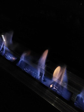 Иногда в моделях используются шелковые лоскуты, изображение которых проецируется на заднюю панель камина, имитируя огонь.