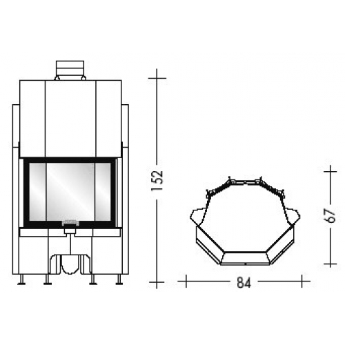 Дровяная каминная топка с металлической структурой и очагом из огнеупорной керамики. Топка с высоким КПД и низкими показателями выброса продуктов горения в атмосферу, характерен сниженный расход топлива и всегда чистое стекло. Модель с подъемным механизмом, призматическое стекло.