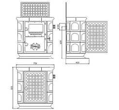 Печь-камин Akropolis пристенный (топка со складными дверцами)