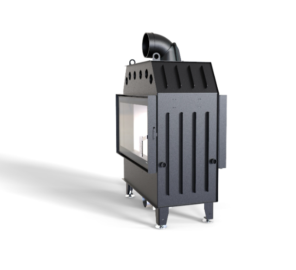 Изготовлена из высококачественной стали и предназначена для отопления помещения площадью 70-230 м². Модель имеет 2 дверцы из закаленного стекла, что выдерживает температуру до 800 °С. Благодаря такой конструкции, открывается вид пламени с обох сторон и камин возможно установить в межкомнатных перегородках и наслаждаться видом огня даже в разных комнатах. Дверцы имеют по ручке из качественной нержавеющей стали.