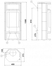 Корпус каминной топки выполнен из жаропрочной стали, колосники и патрубки из чугуна.