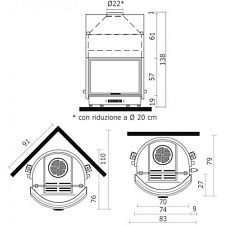 Корпус каминной топки выполнен из жаропрочной стали, колосники и патрубки из чугуна.