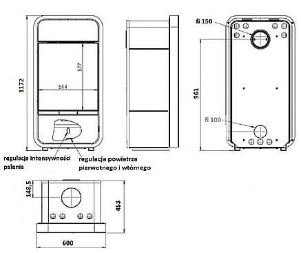 - Диаметр дымохода, (мм) 150